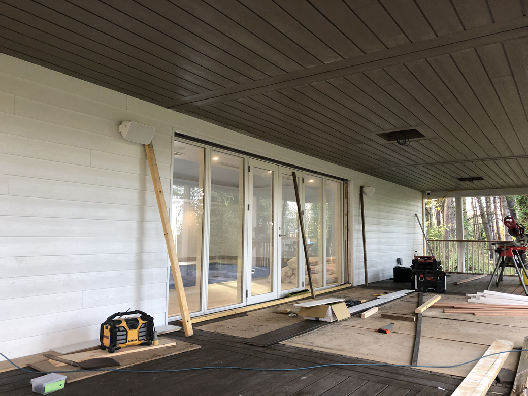 X2 Sonos architectural outdoor speakers on outdoor balcony.
