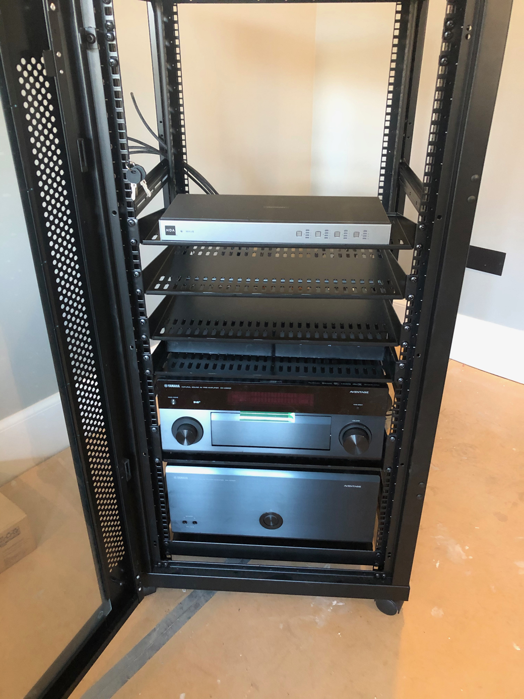 This property went through a very extensive upgrade. We worked with the client and the contractors throughout to design and build a stunning 13 Channel Dolby Atmos Theatre.
